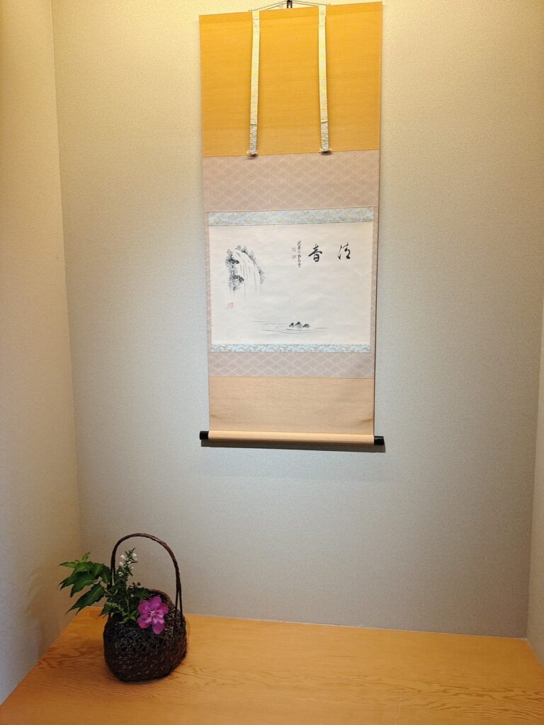 茶室には、季節の花が入れられ、掛け軸には季節に合った言葉や絵が飾られます。